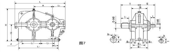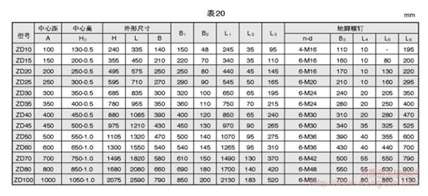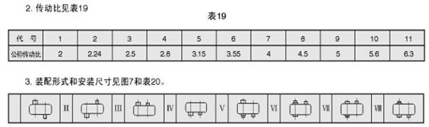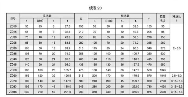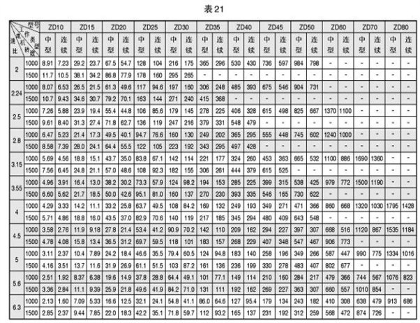 *本表僅列出在兩種不同的輸入轉(zhuǎn)數(shù)及工作類(lèi)型的情況下,減速器高速軸的許用功率,其它轉(zhuǎn)數(shù)、類(lèi)型、負(fù)荷性質(zhì)可近似地參考此表,但應(yīng)注意,當(dāng)每一循環(huán)的工作時(shí)間t工作>20分鐘時(shí),應(yīng)接連續(xù)型選用。