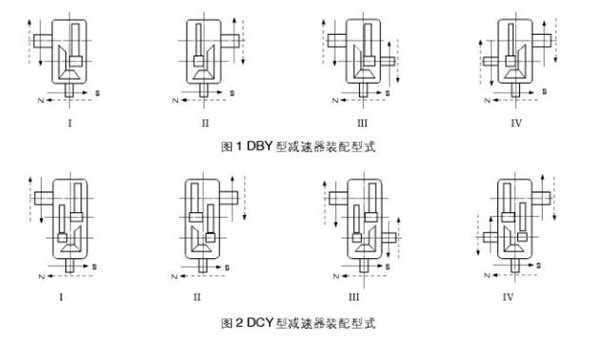 按輸出軸可分I、Ⅱ、Ⅲ、Ⅳ四種裝配型式。I||型為不帶逆止器型,Ⅲ、Ⅳ型為可裝制動f逆止】器型。結構簡圖見圖1、圖2、圖3、圖4。