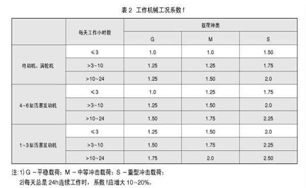 被驅動的工作機械載荷可分.平穩(wěn)載荷(G),中等沖擊載荷(M),重型沖擊載荷(S)及每天總是24h連續(xù)工作的工作