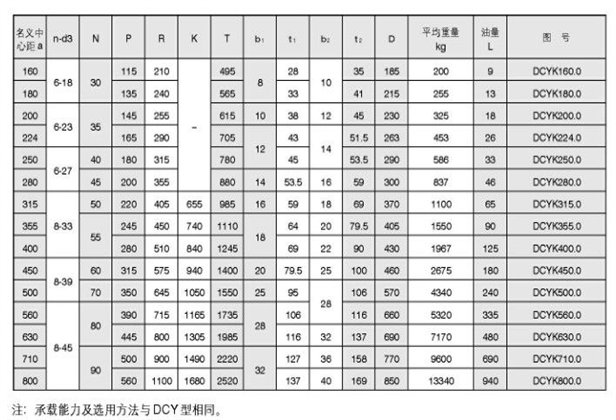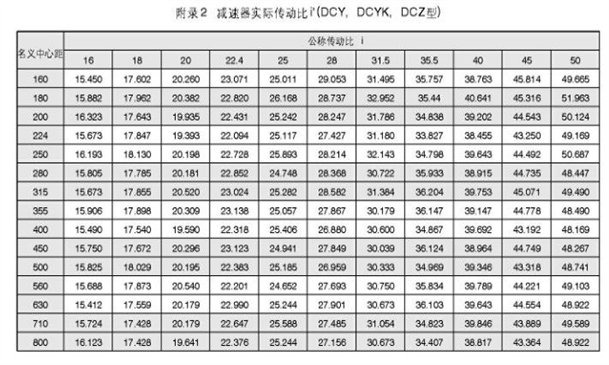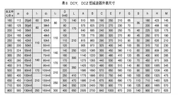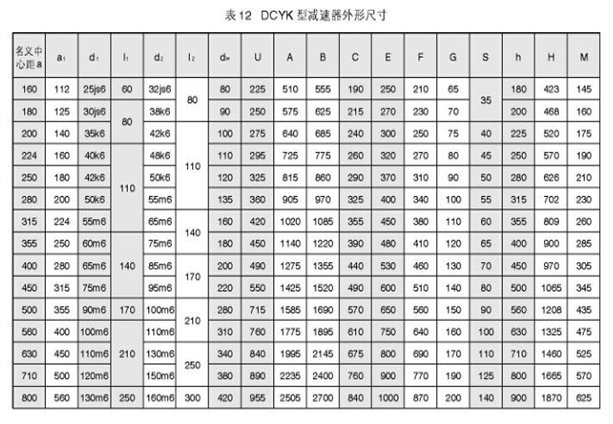 DCY、DCYK、DCZ型減速器各有15種規(guī)格,名義中心距為:160,180,200,224,250,280,315,355,400.